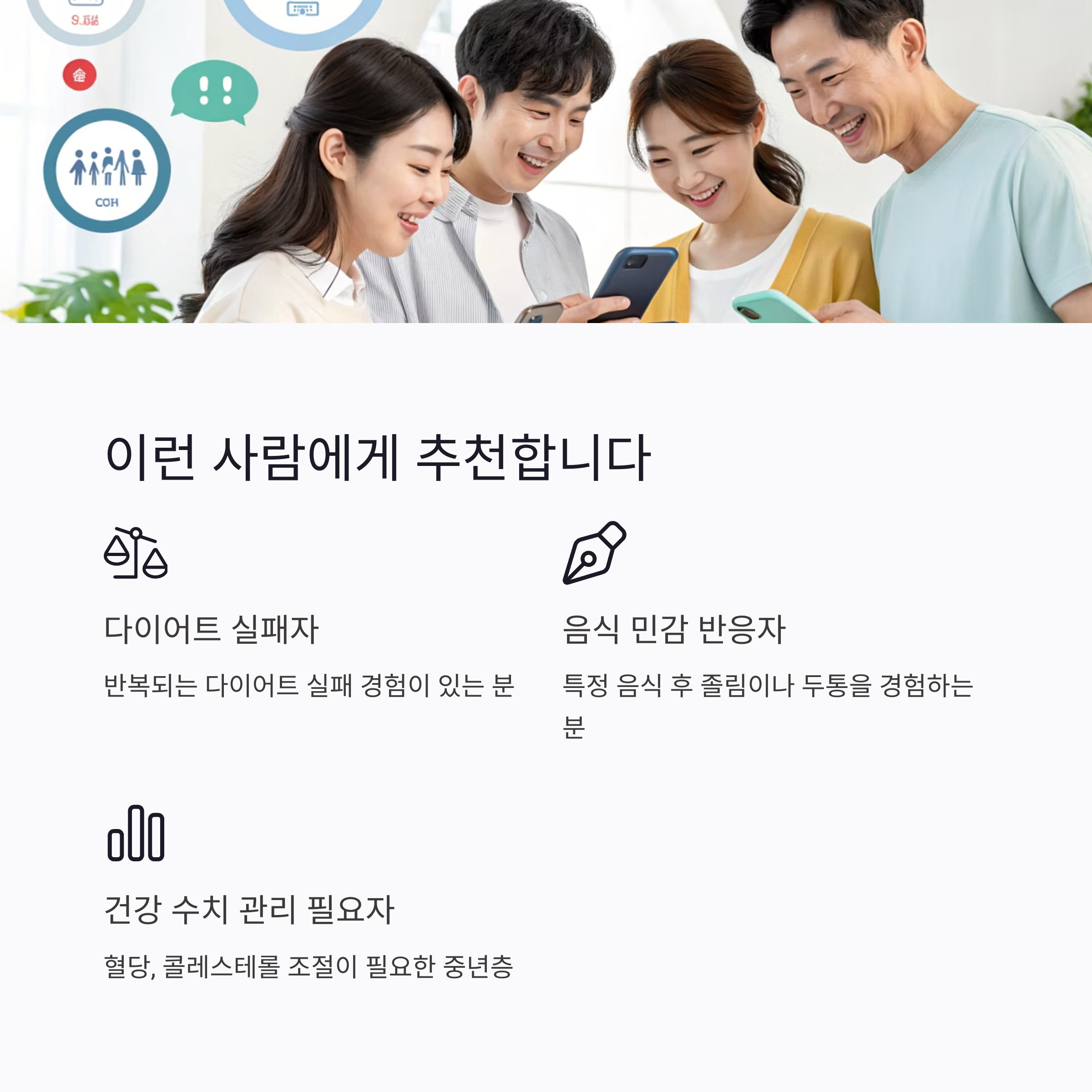 - 혈당, 콜레스테롤 수치 조절이 필요한 중년층