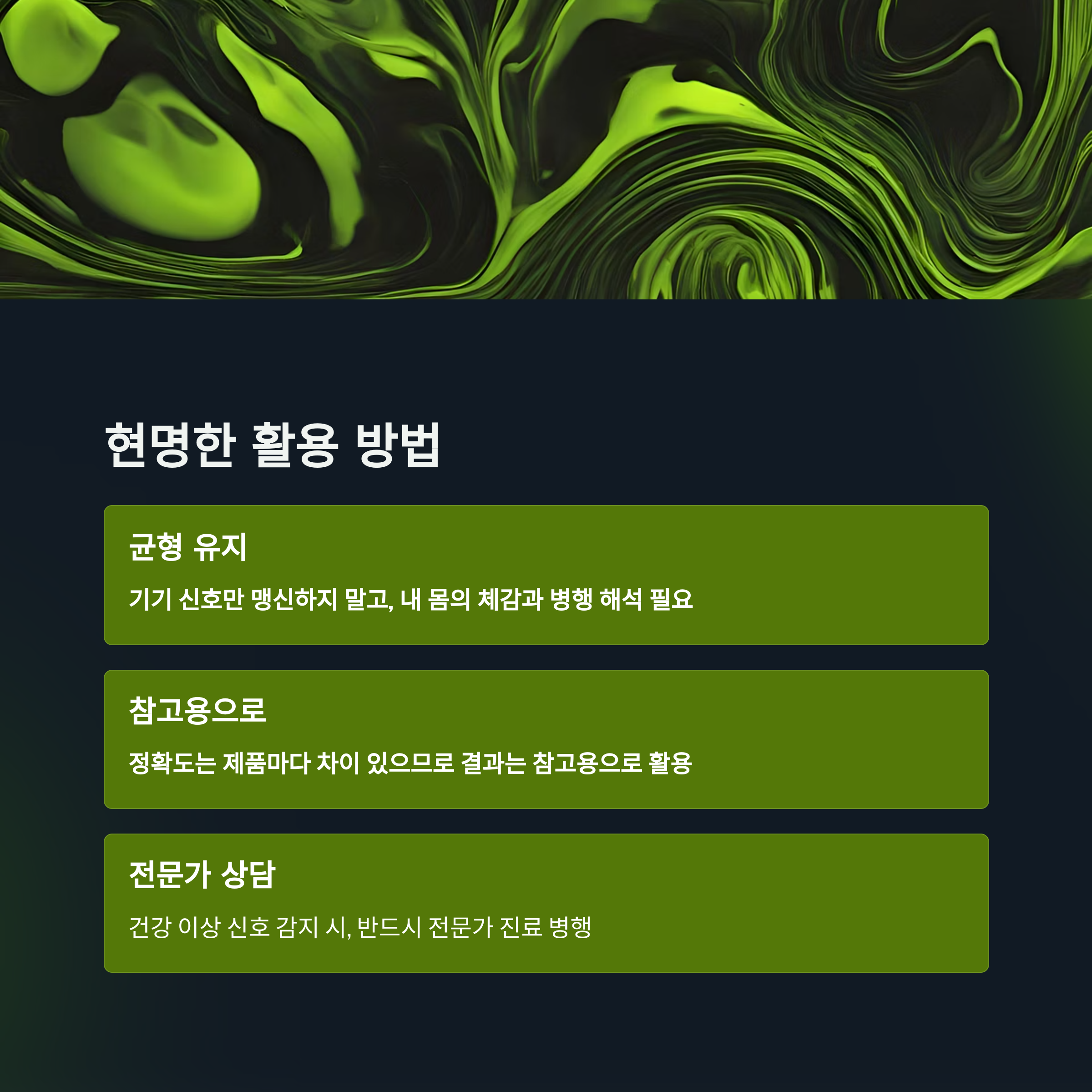 - 기기 신호만 맹신하지 말고, 내 몸의 체감과 병행 해석 필요
