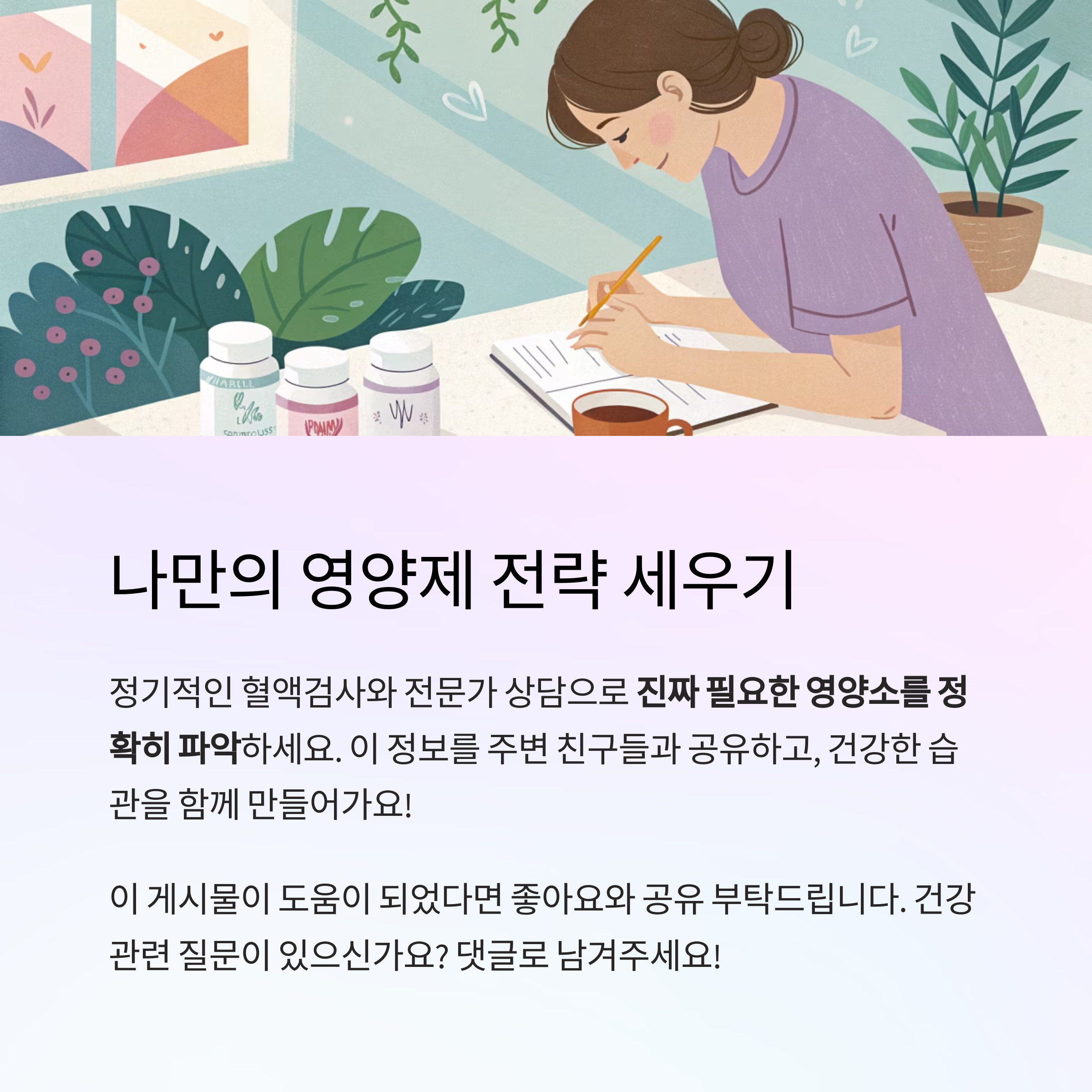 결론: "영양제는 맞춤이 핵심, 남이 먹는 것 따라하지 마세요"