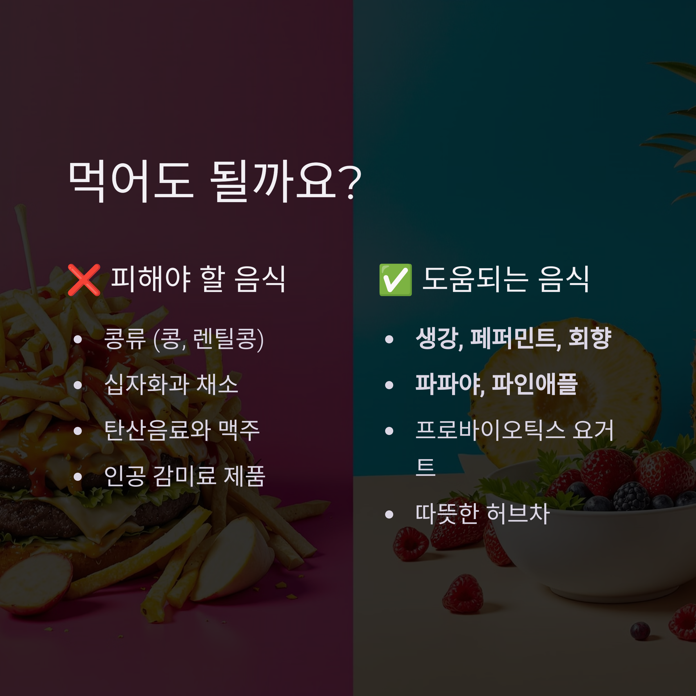 Q: 약국에서 살 수 있는 약이 있나요? A: 시메티콘 성분의 일반의약품이 도움될 수 있지만, 근본적인 원인 해결을 위해서는 식습관 개선이 더 중요합니다.