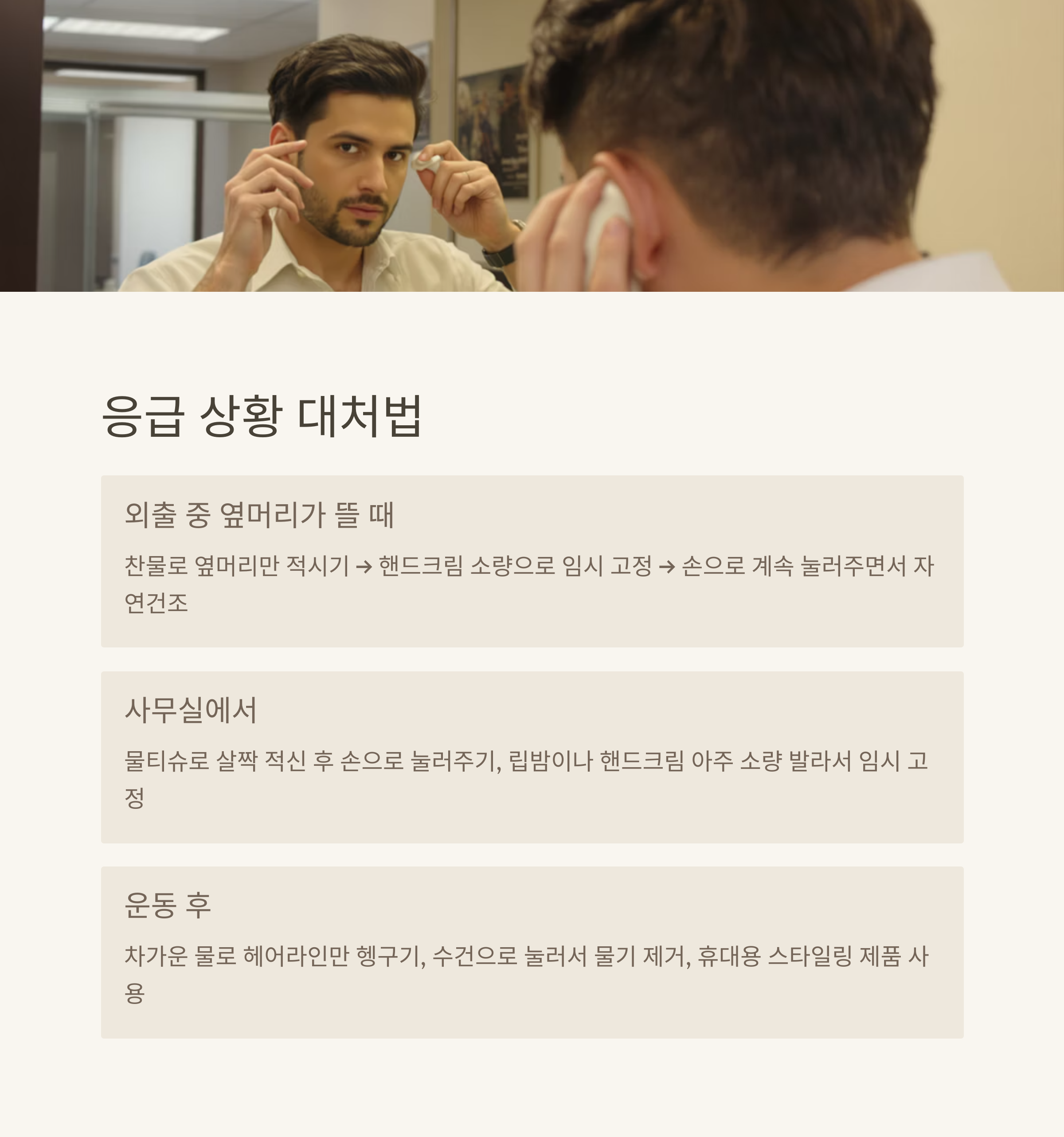 아침에 열심히 머리를 세팅했는데 점심때쯤 되면 옆머리가 삐죽삐죽 올라와서 고민이신가요? 특히 구렛나루 부분이 뜨면서 지저분해 보여서 스트레스받는 분들이 정말 많아요. 옆머리가 뜨는 건 단순히 스타일링 문제가 아니라 모발의 성장 방향, 얼굴형, 헤어컷 방법 등이 복합적으로 작용한 결과예요. 하지만 정확한 원인을 파악하고 올바른 방법을 사용하면 하루 종일 깔끔한 헤어스타일을 유지할 수 있어요. 오늘은 옆머리 뜨지 않게 하는 모든 비법을 알려드릴게요.