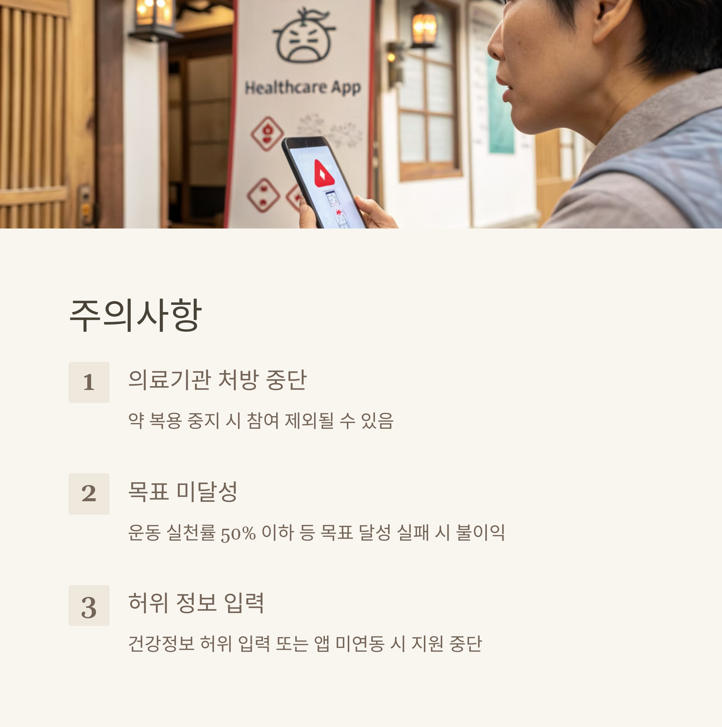 | 운동 실천 | 주 3회 이상 걷기, 체육시설 이용 | 앱 자동 연동 또는 수기입력 |