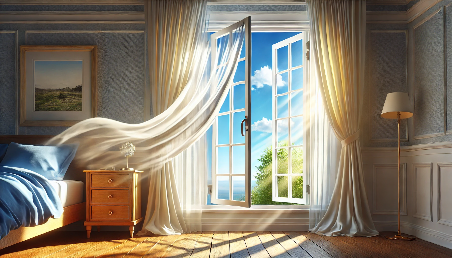 자기 전 5-10분 정도 환기를 하면 수면 중 산소 공급이 원활해지고 실내 오염물질 농도가 낮아집니다. 특히 여름철에는 취침 1시간 전, 겨울철에는 취침 30분 전에 환기하는 것이 좋습니다.