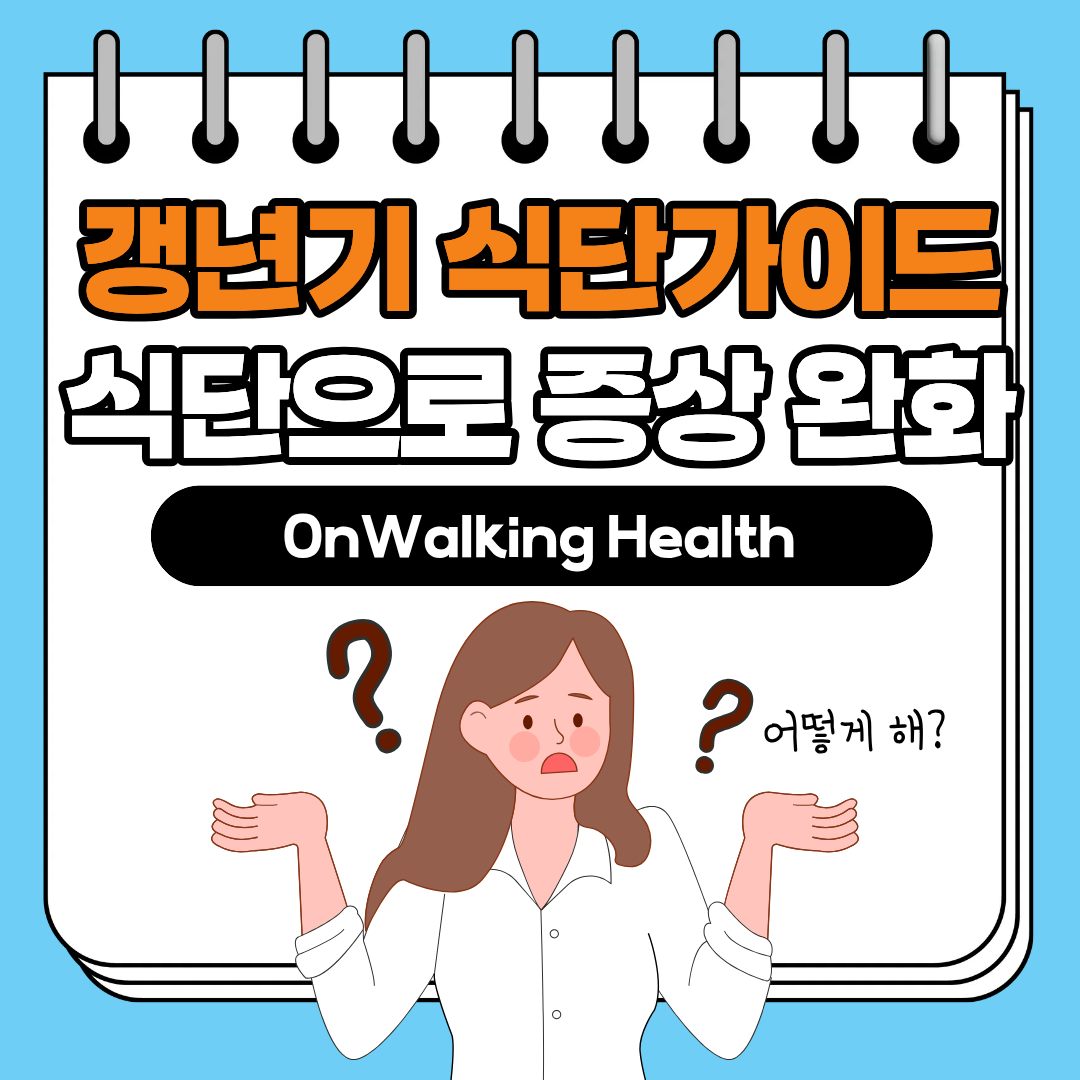 안녕하세요, 갱년기로 인해 식단 관리에 어려움을 느끼셨거나, 어떤 음식이 갱년기 증상 완화에 도움이 되는지 궁금하셨던 분들을 위한 OnWalking Health의 맞춤형 식단 가이드를 가져왔습니다.
