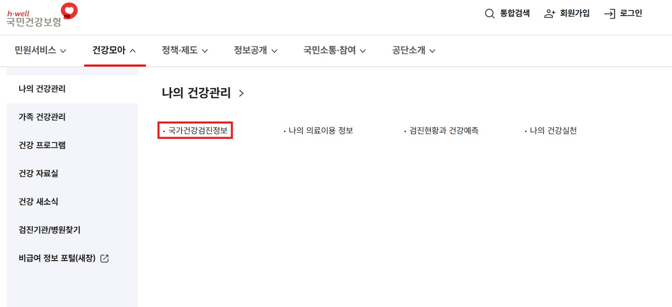 - 포털 사이트에서 '국민건강보험공단'을 검색해 공식 홈페이지에 접속합니다.