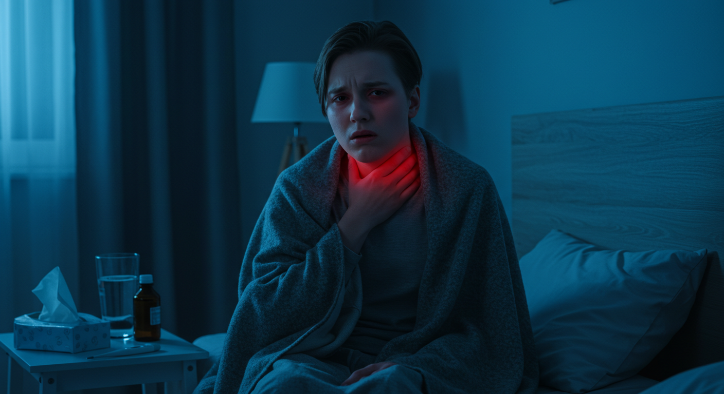 "코로나 재유행 증상인 심한 인후통을 겪는 모습"