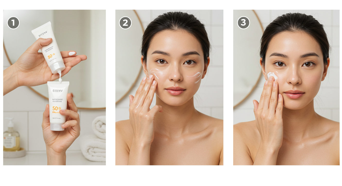 자외선 차단제를 올바르게 사용하는 방법은 다음과 같습니다: