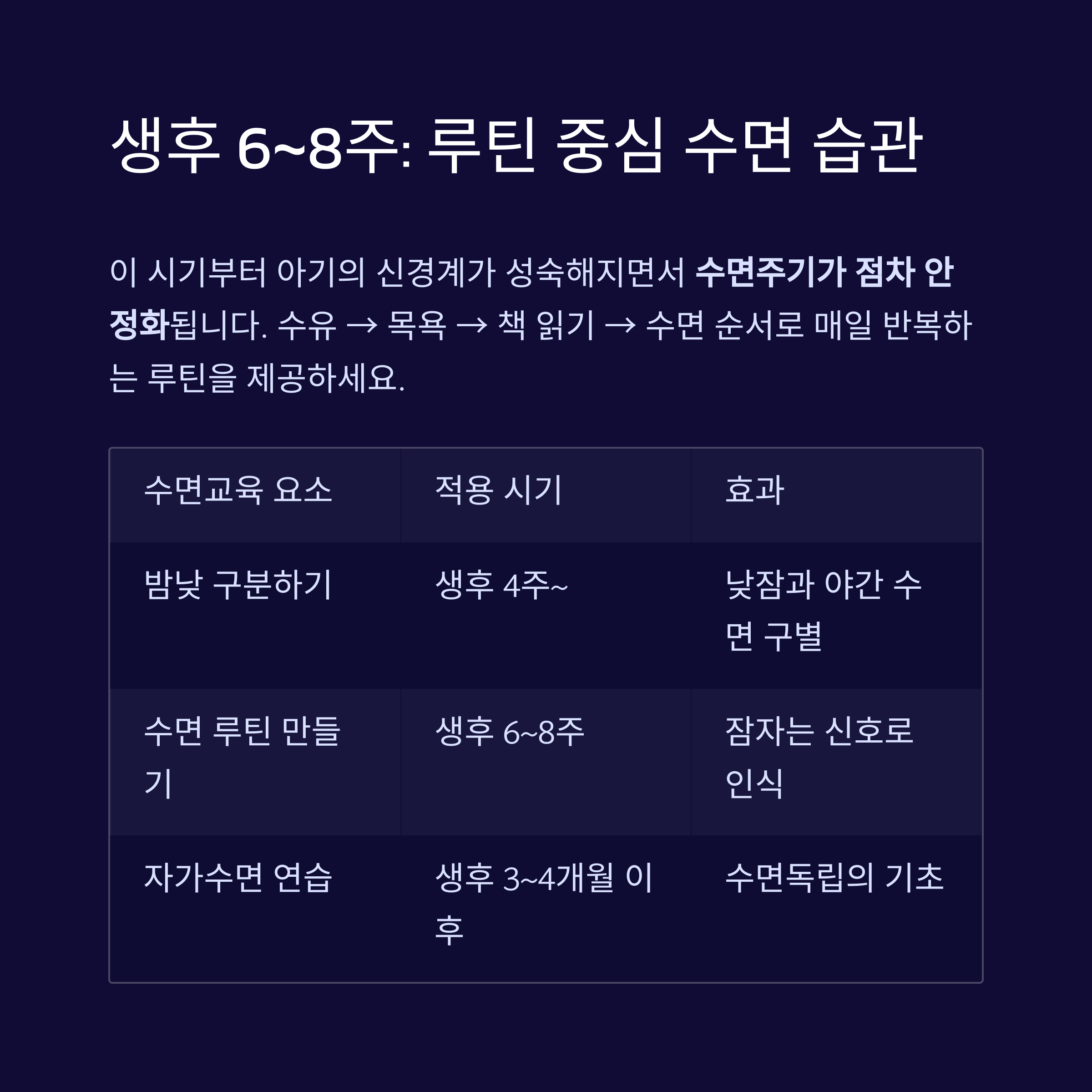 생후 6~8주: 루틴 중심의 수면 습관 교육 가능