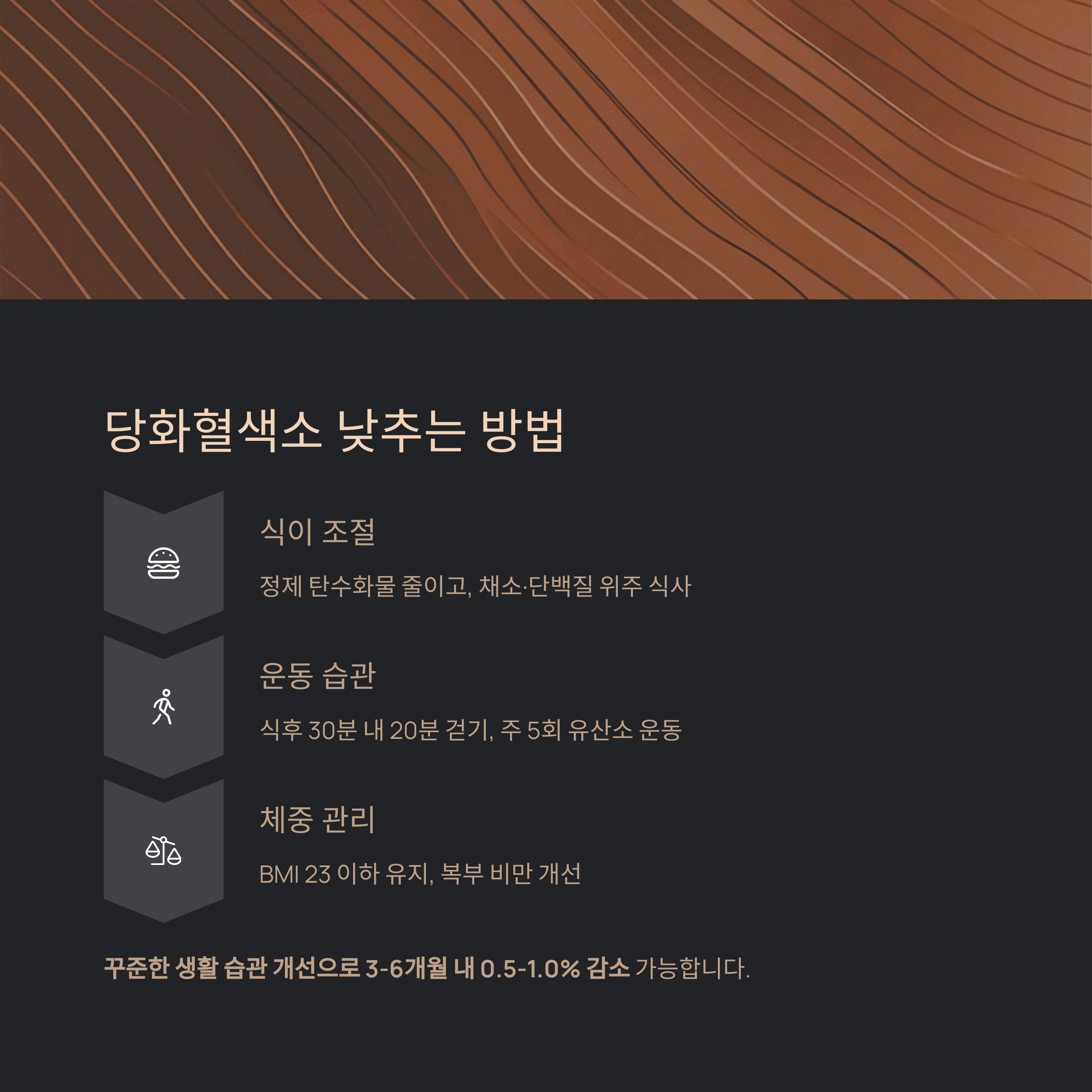 이 때문에 당뇨 환자는 단순 혈당 수치뿐만 아니라 장기적 관리 목표로 HbA1c 6.5% 미만 유지를 권장받습니다.
