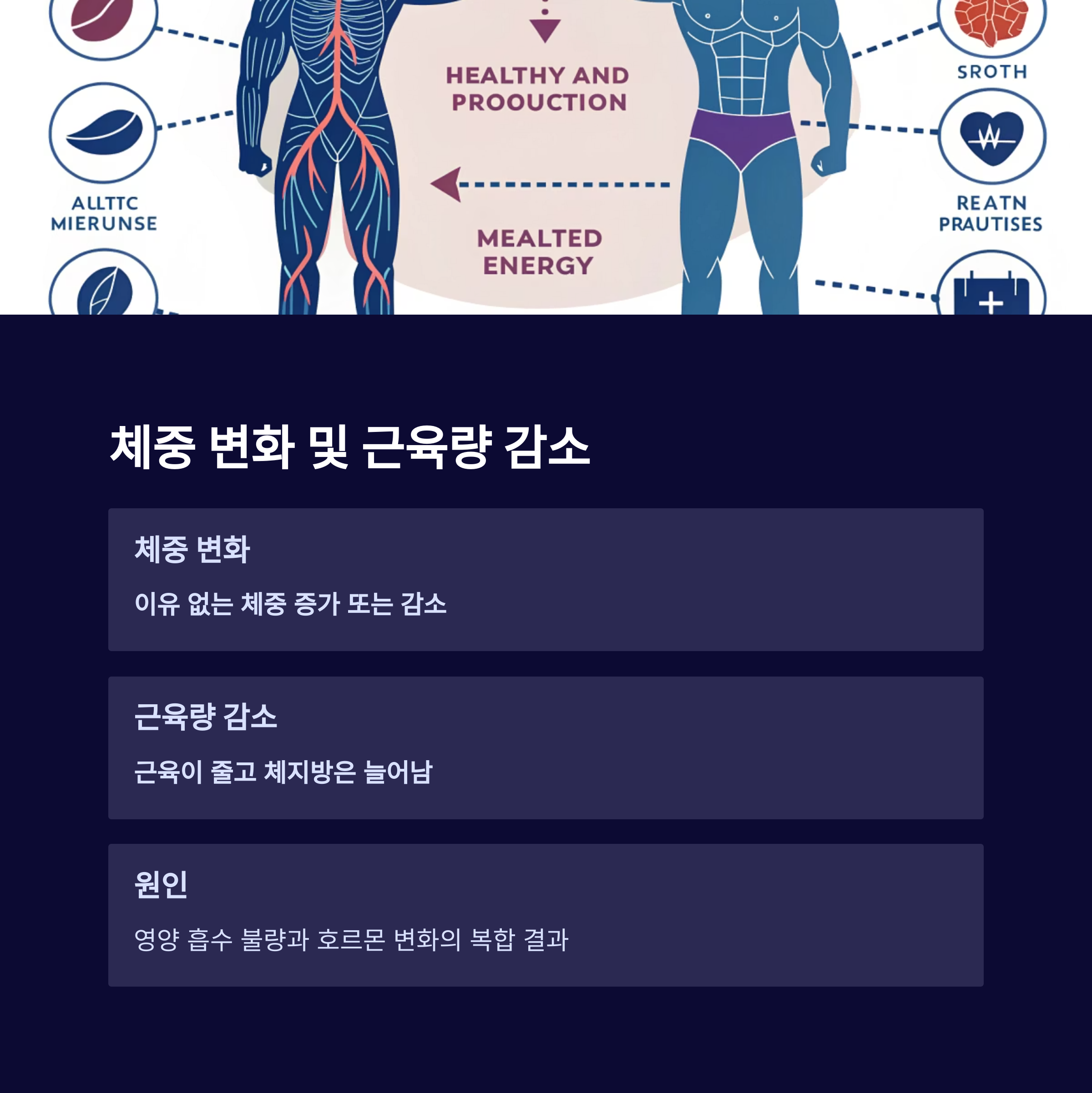 근육이 줄고 체지방은 늘거나, 이유 없는 체중 증가 또는 감소는