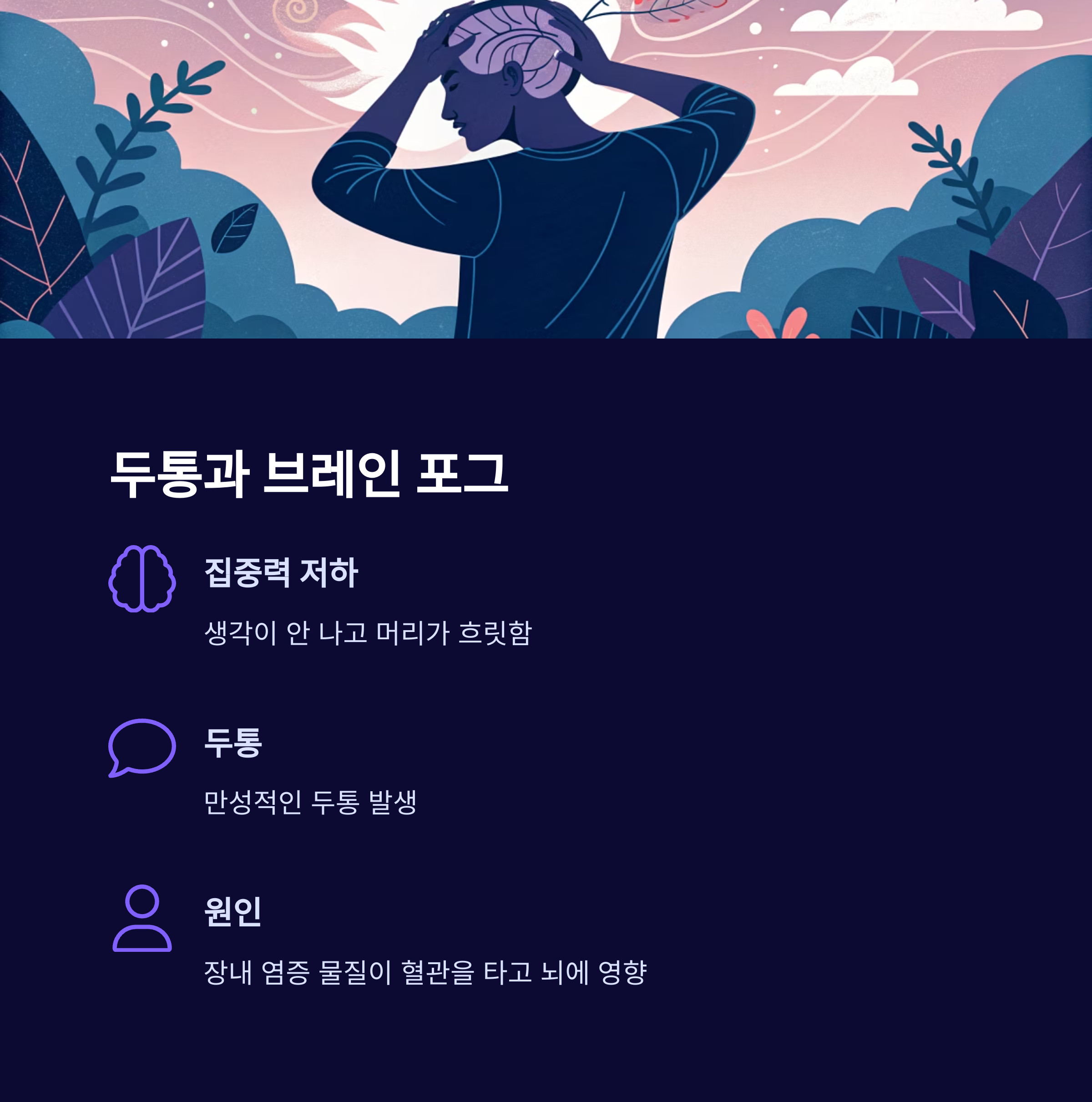 이른바 '브레인 포그(brain fog)'는 장내 염증 물질이 혈관을 타고 뇌에 영향을 주는 현상으로,