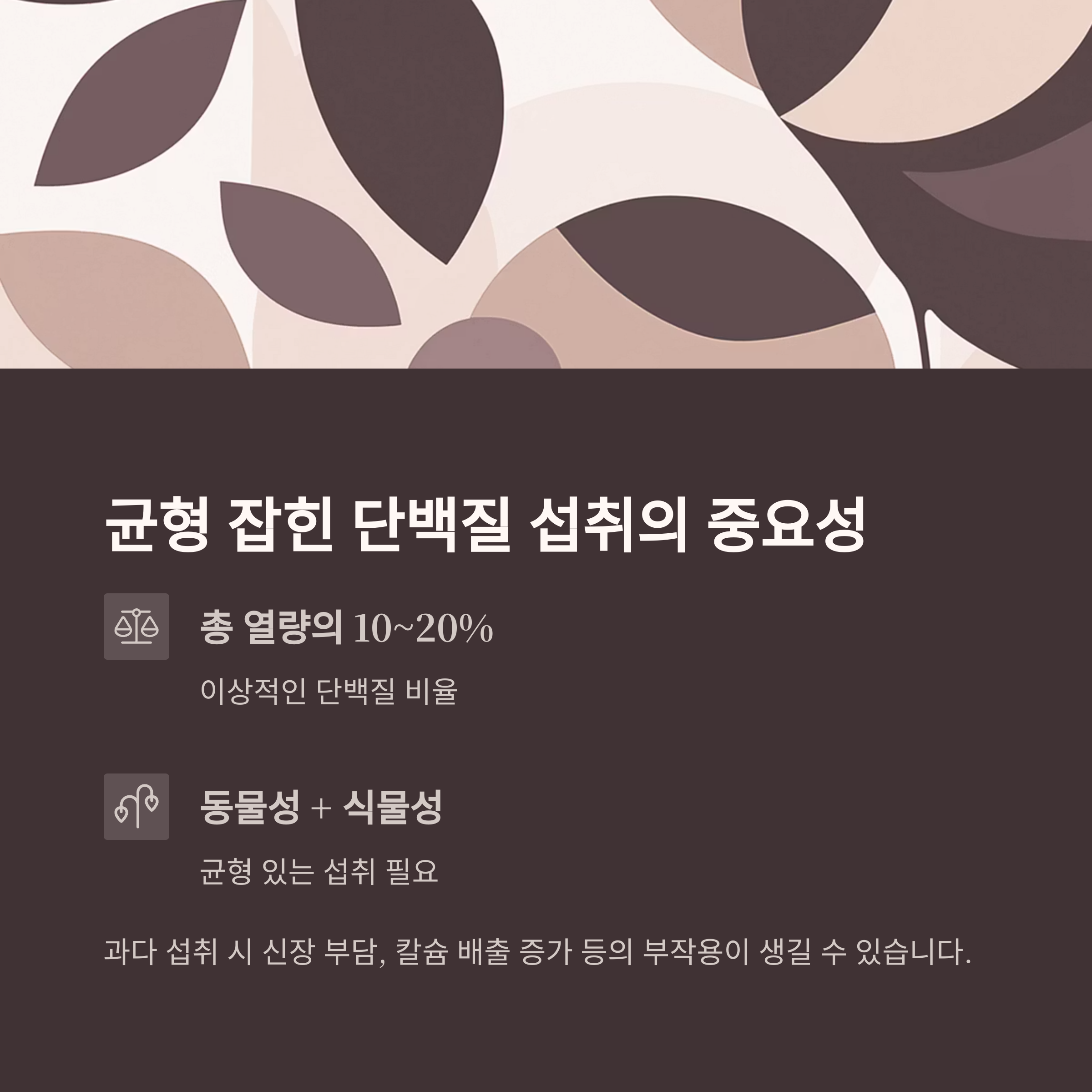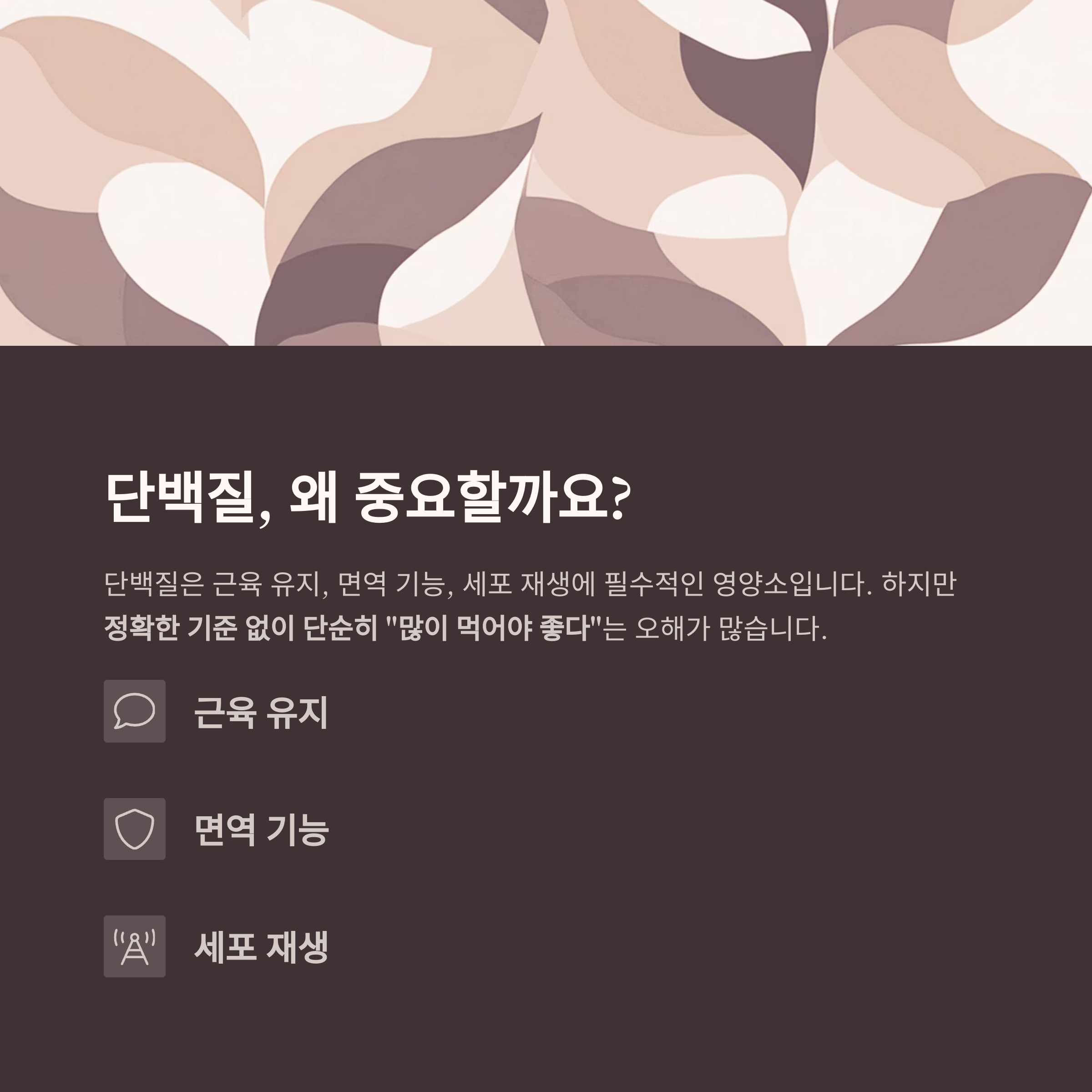 단백질은 근육 유지와 면역 기능, 세포 재생에 꼭 필요한 필수 영양소입니다.