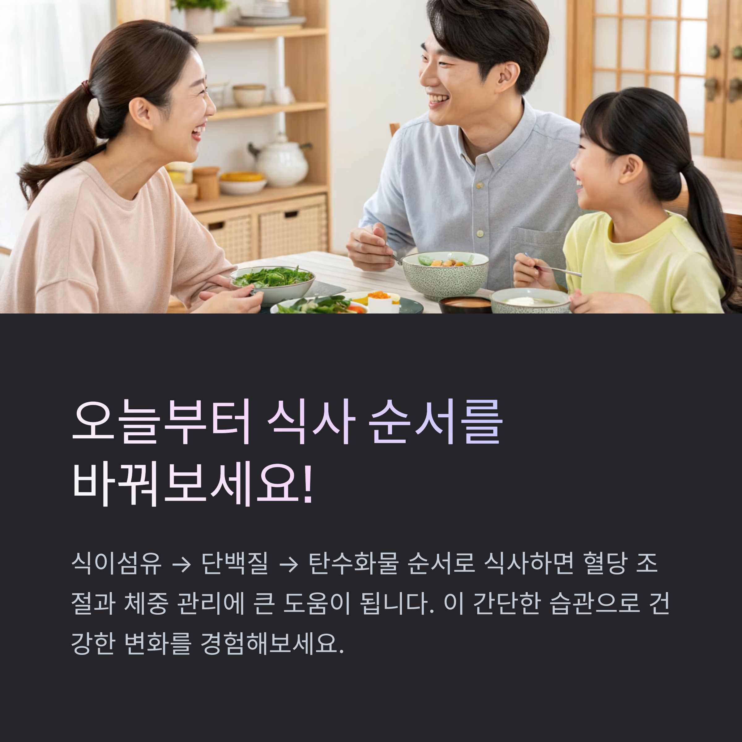 | 첫 입 | 반드시 식이섬유 식품으로 시작 |
