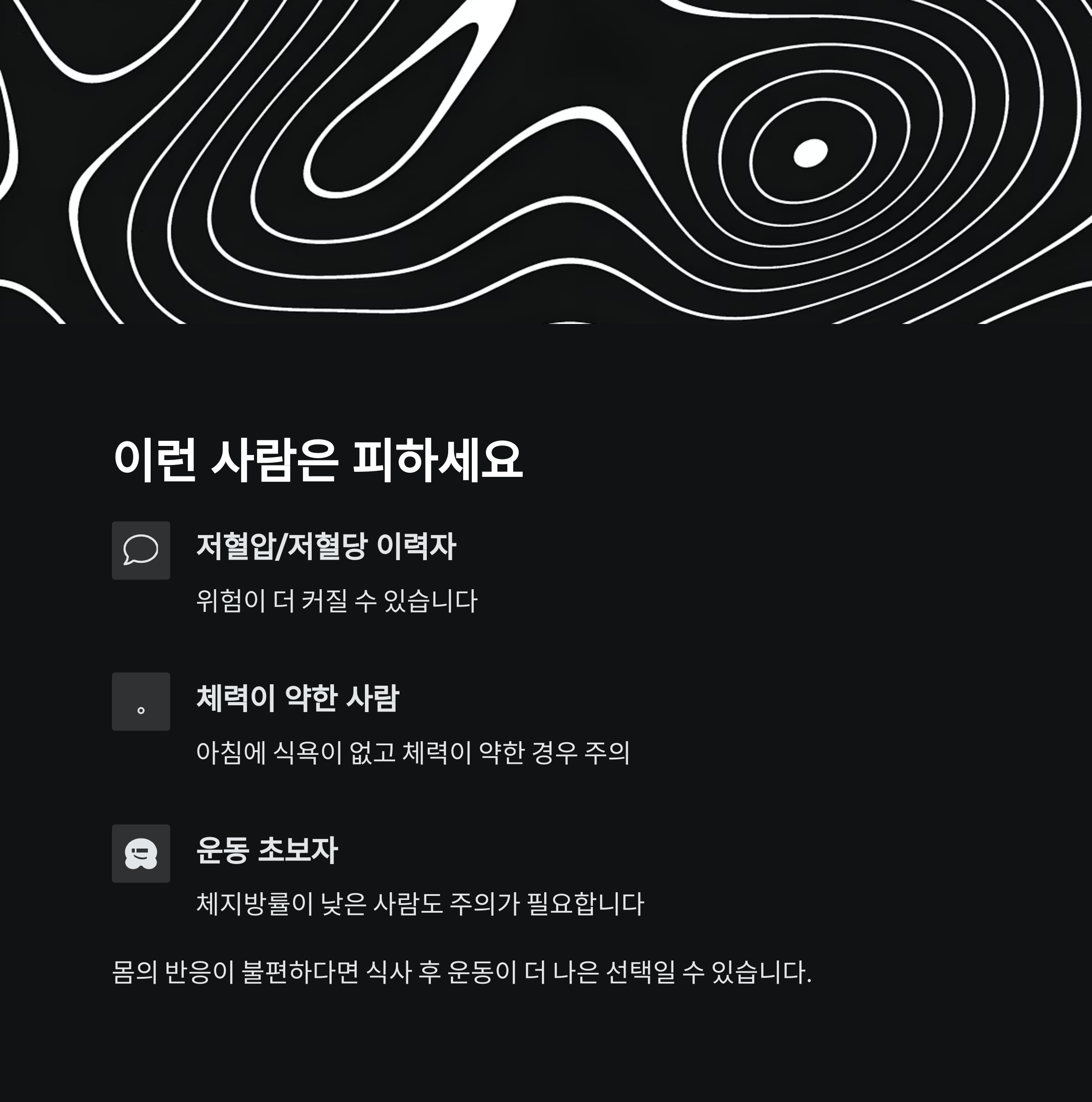 무조건 좋은 것은 아니며 운동 목적과 체질에 따라 효과와 부작용이 갈릴 수 있습니다.