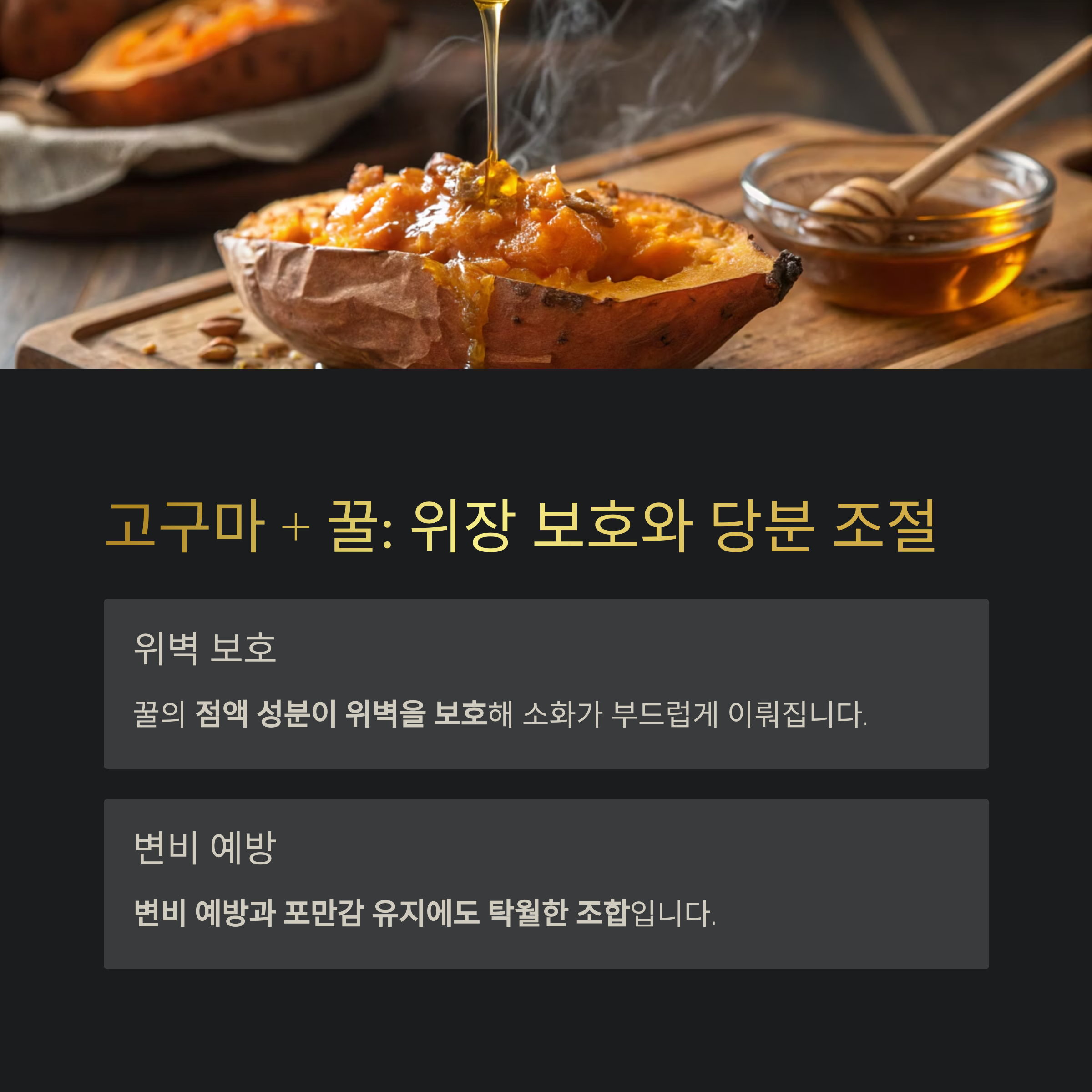 고구마 + 꿀: 당분 흡수 조절과 위장 보호