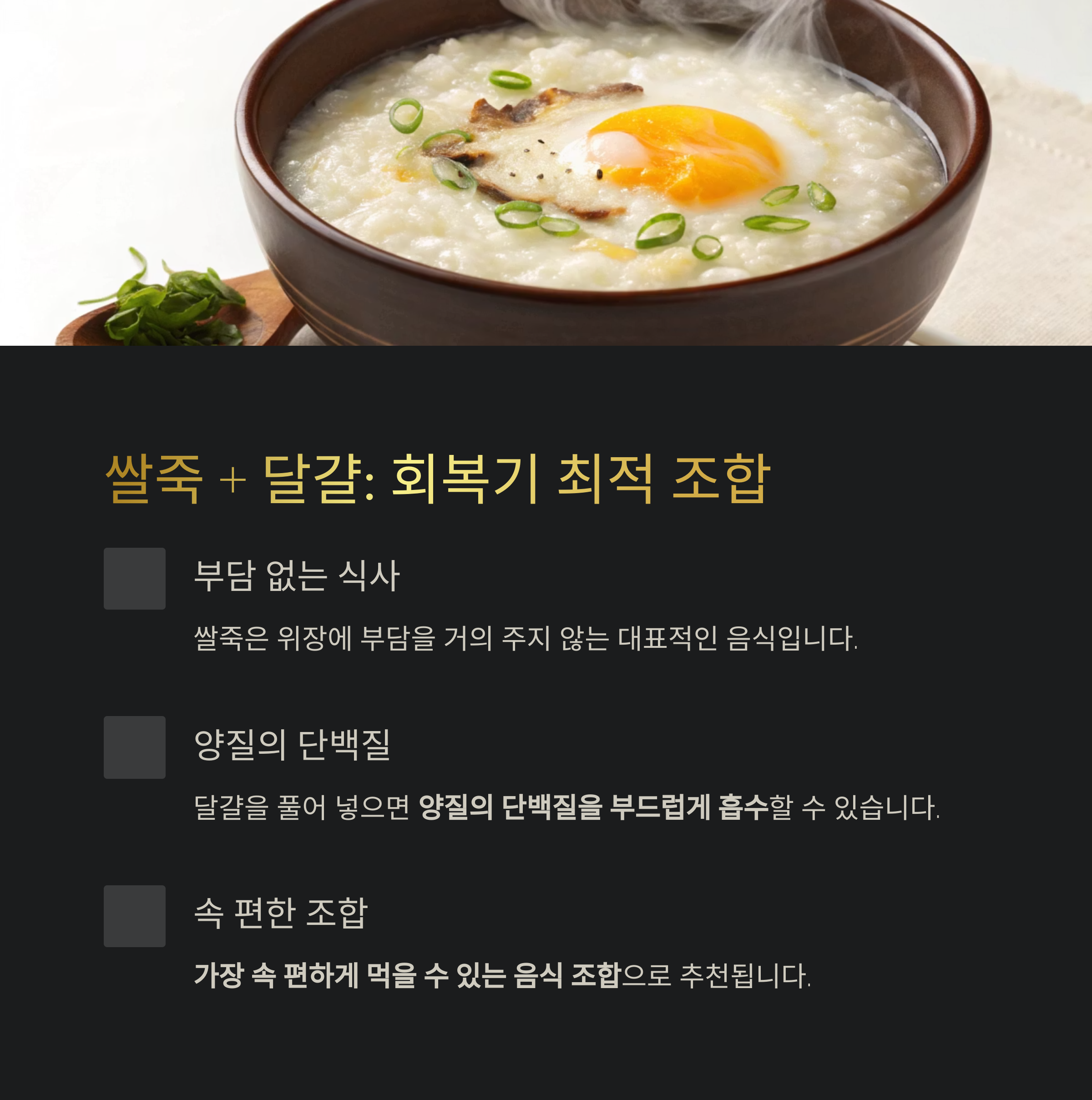 쌀죽 + 달걀: 병 후 회복기 소화 최적 조합