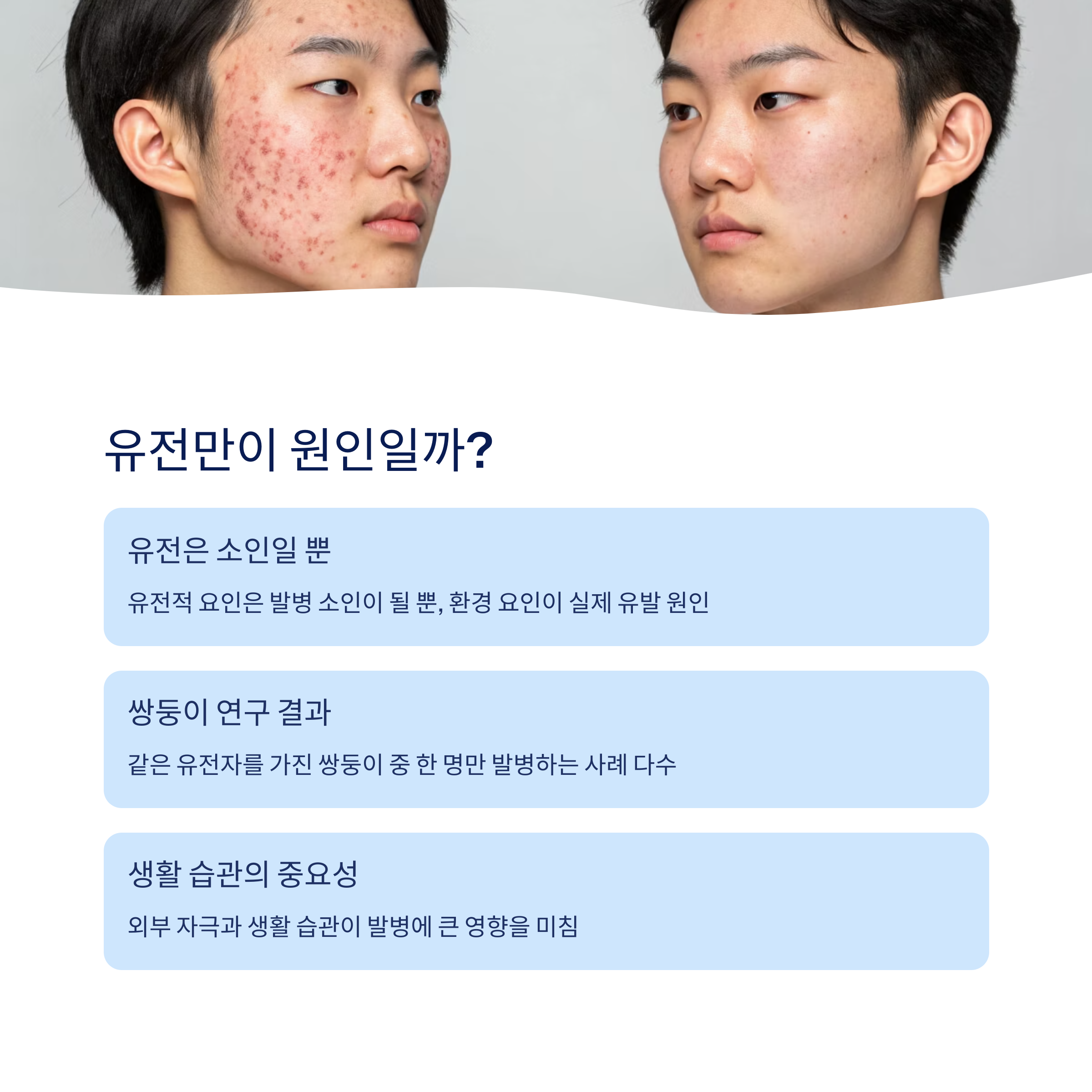 유전은 발병 소인이 될 뿐, 환경 요인이 병을 실제로 유발하는 경우가 많습니다.