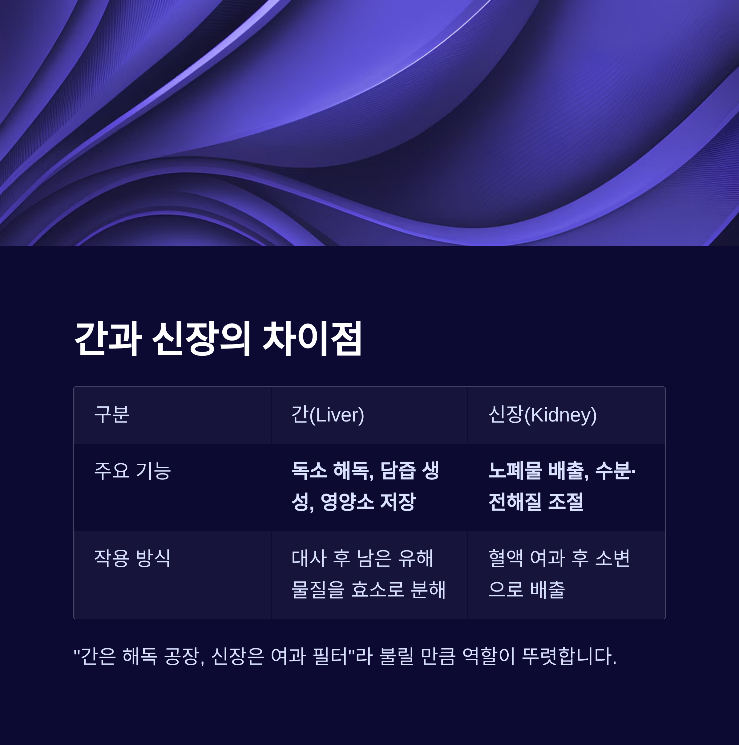 “간은 해독 공장, 신장은 여과 필터”라 불릴 만큼 역할이 뚜렷하지만,