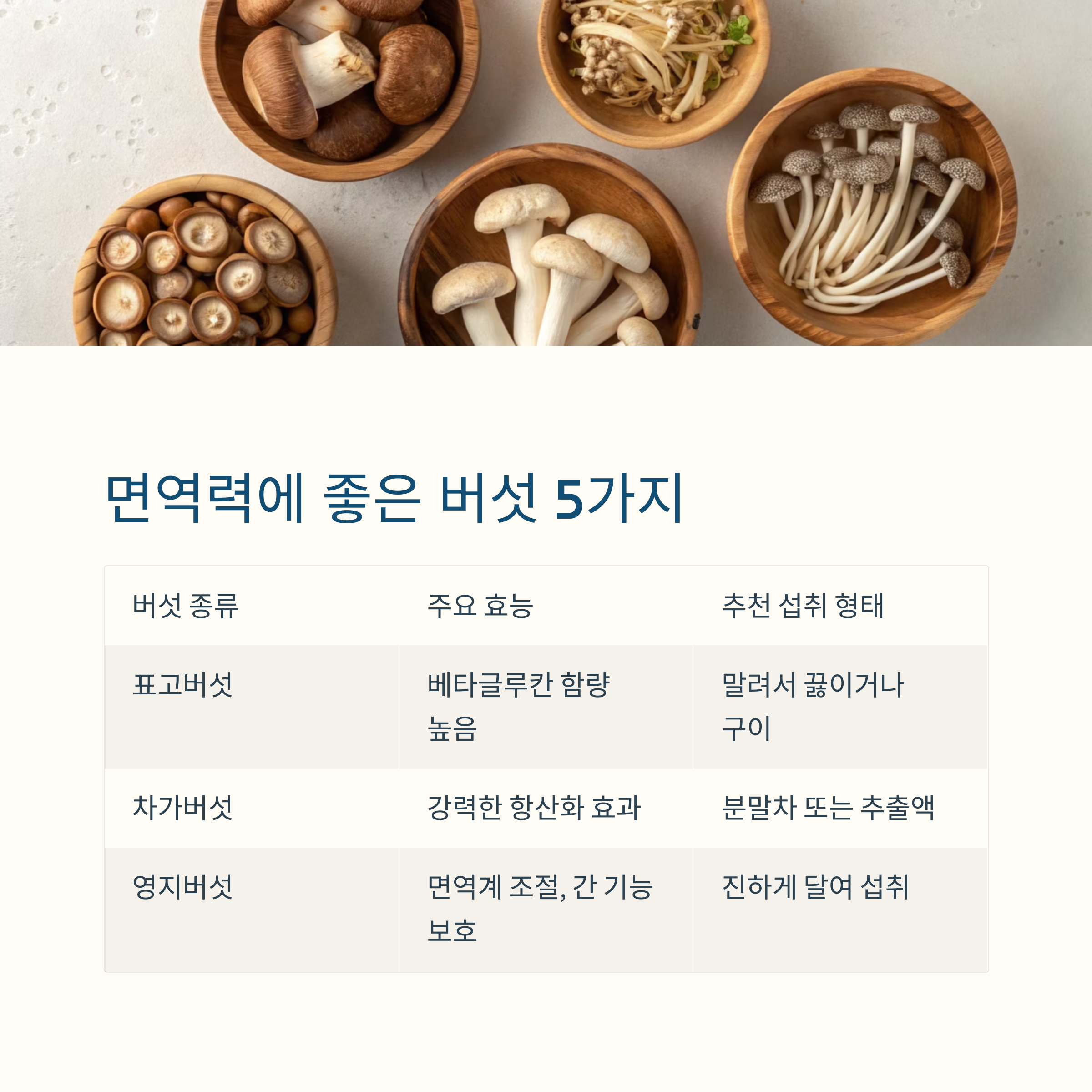 면역력에 좋은 대표 버섯 5가지와 효능 비교